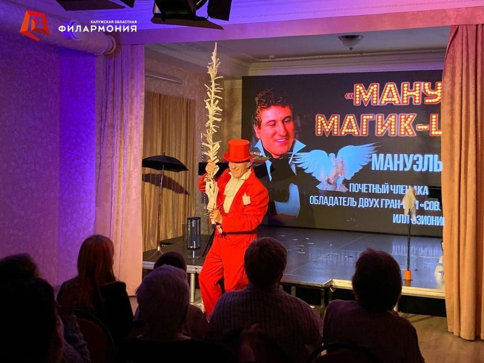 Вернуться назадСегодня Малый зал Гостиного двора превратился в волшебное пространство, где зрителей ожидало настоящее чудо. Две увлекательные программы, представленные на сцене — «Фокус-покус» и «Мануэль. Магик-шоу», продемонстрировали искусство манипуляции и мастерство иллюзий заслуженного артиста Калужской области Мануэля Казаряна.