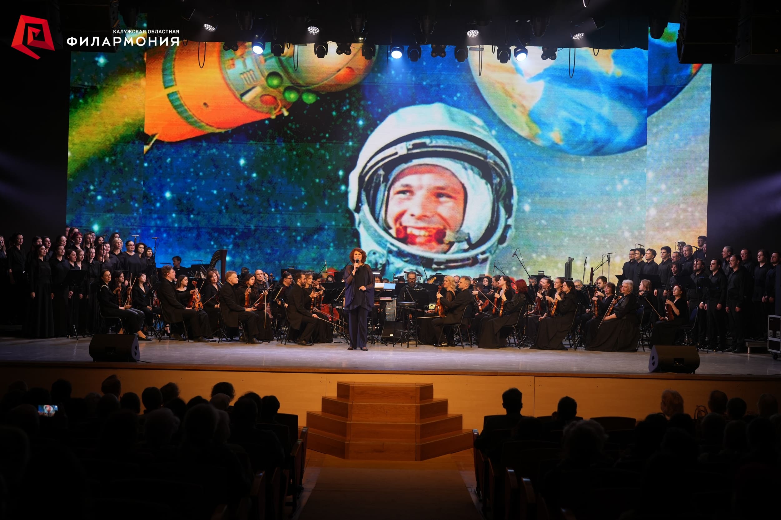 Вернуться назадСегодня в концертном зале Калужской областной филармонии в рамках Недели космоса, приуроченной к 65-летию первого полёта человека в космос, жизнь Юрия Гагарина обрела мелодию и визуальное воплощение в мощном синтезе искусств героической эпопеи «Вперёд, к звёздам!».