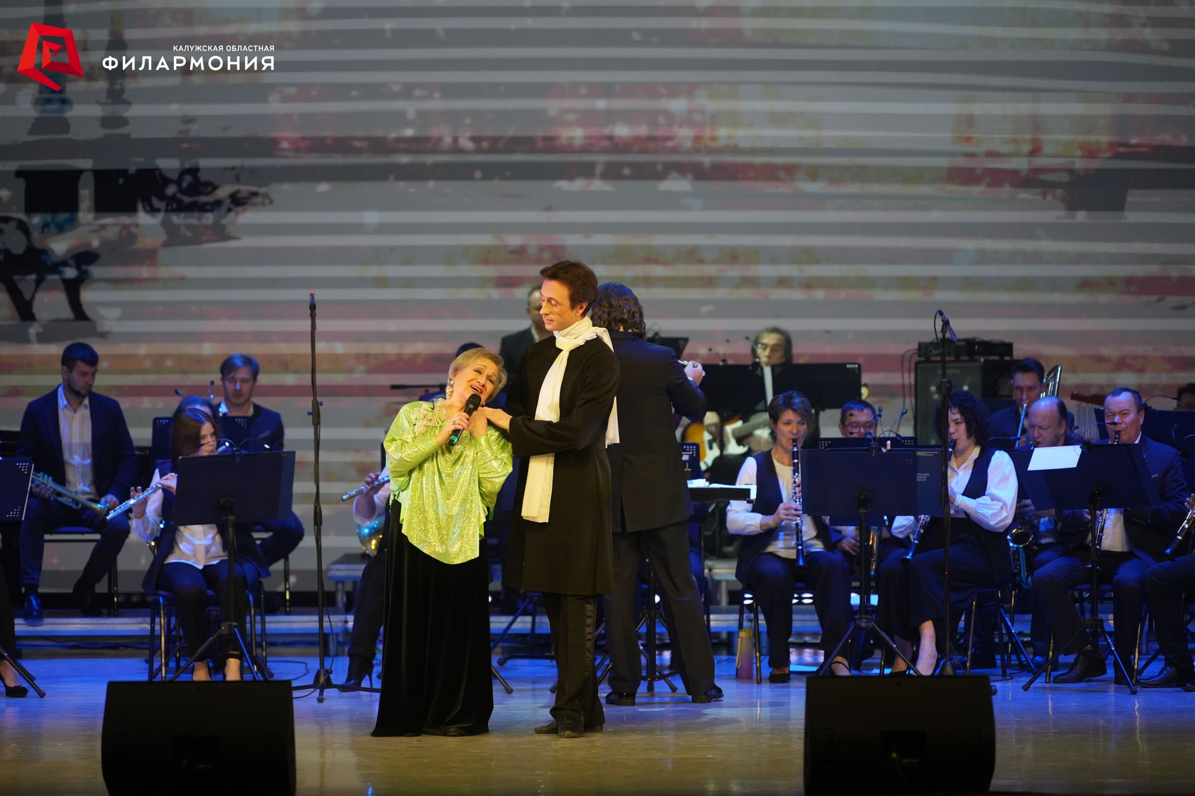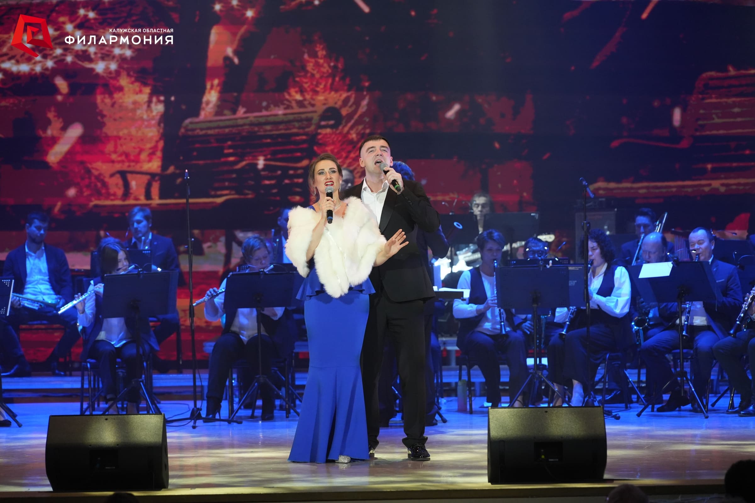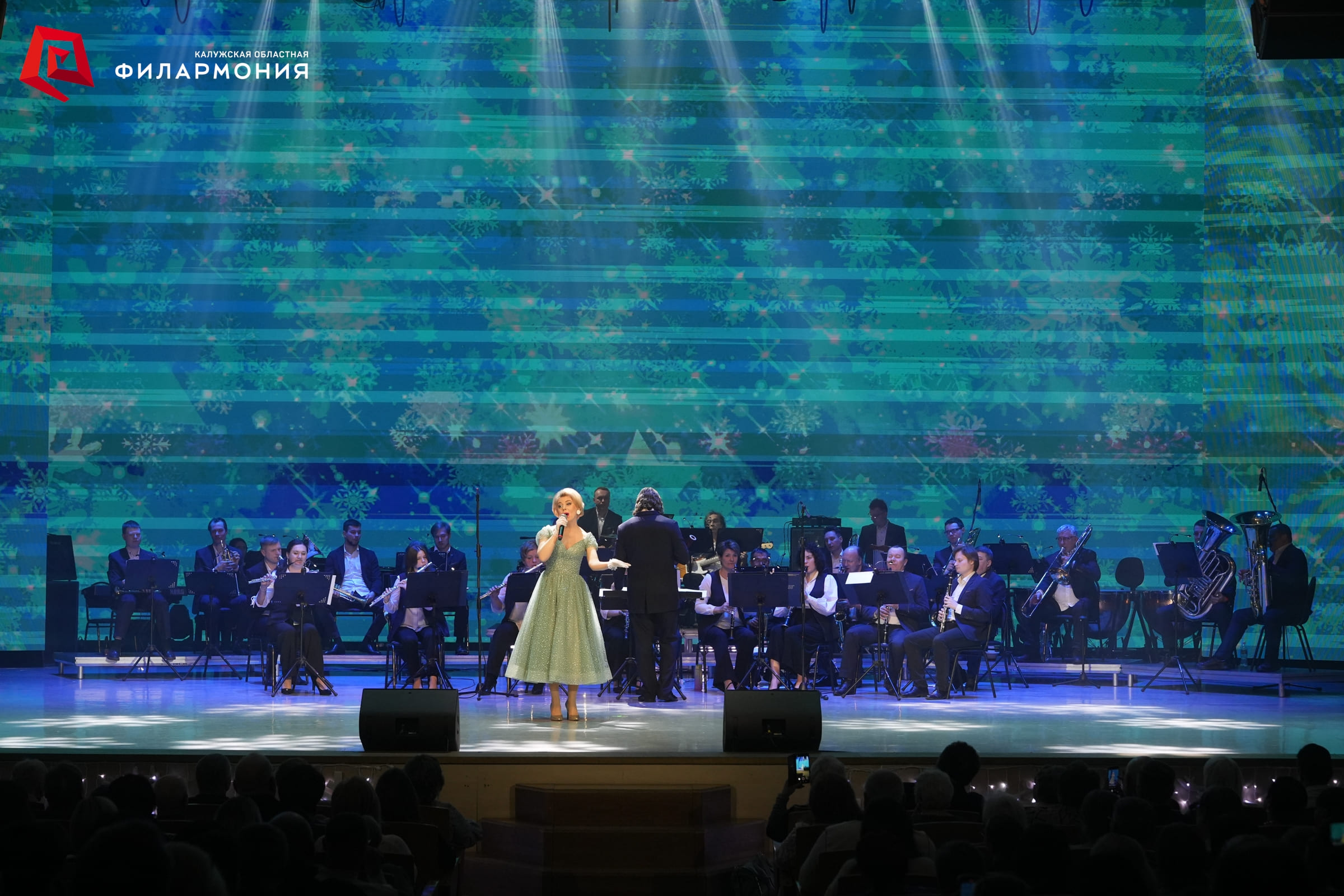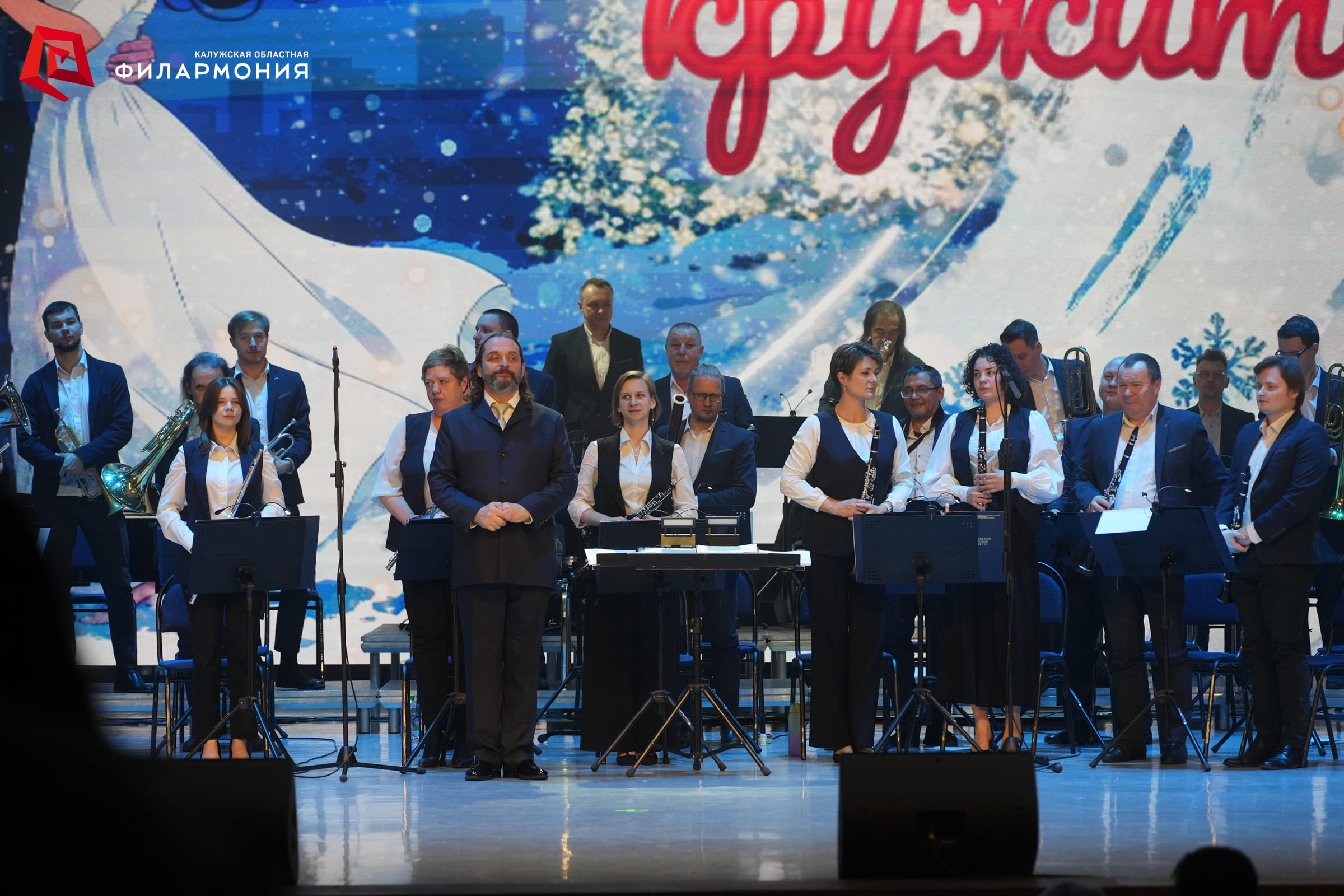 На сцене в сопровождении Губернского духового оркестра под управлением заслуженного артиста Калужской области Сергея Орлова исполнили самые любимые новогодние песни заслуженная артистка России Эльвира Никифорова, заслуженная артистка Калужской области Татьяна Мосина, заслуженный артист Калужской области Дмитрий Башкиров, Ольга Невская, Мария Селявинская, Владислав Миронов и Артём Жулев. Особую новогоднюю атмосферу дополнили яркие танцевальные постановки артистов Академического ансамбля танца под руководством заслуженного работника культуры Калужской области Елены Теребиленко.