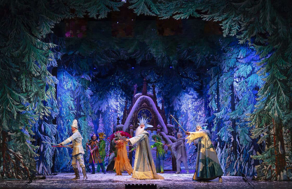 Полный волшебного очарования заснеженный лес возникает перед зрителями, как только откроется занавес.
